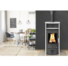 La estufa Casablanca 3.0 de 122 kg es un elegante ejemplo de su clase. El cuerpo negro armoniza a la perfección con el revestimiento cerámico blanco de la estufa. Especialmente en interiores en blanco y negro, esta potente estufa de combustión lenta se integra a la perfección con el concepto de diseño interior. Además, la estufa proporciona a su salón una temperatura agradable y confortable.